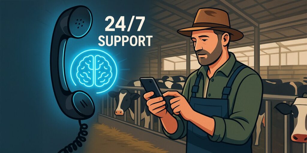 Ein Landwirt bemerkt abends, dass er dringend Pflanzenschutzmittel nachbestellen muss. Bisher hätte er eine Nachricht auf dem Anrufbeantworter hinterlassen oder bis zum nächsten Morgen gewartet. Mit Voice-KI ruft er an, gibt die Bestellung auf, bekommt eine Bestätigung – und am nächsten Morgen liegt die Bestellung schon in der Disposition.